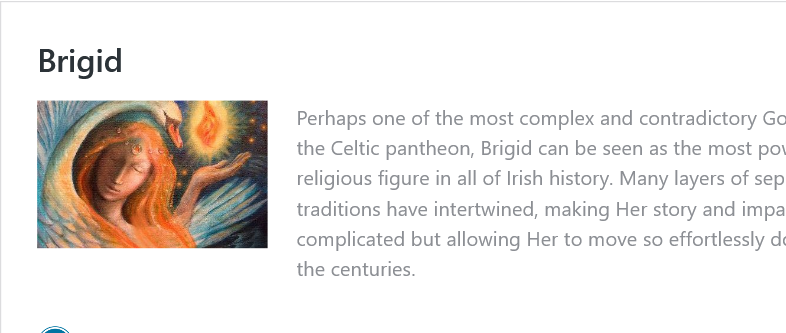 Brighid is de godin van vuur, maar ook van heling, vruchtbaarheid, poëzie, genezing en smeedkunst. Zij worden geassocieerd met deze tijd van het jaar, met Imbolc.