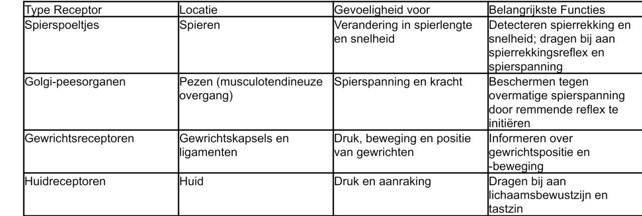 Proprioceptie tabel